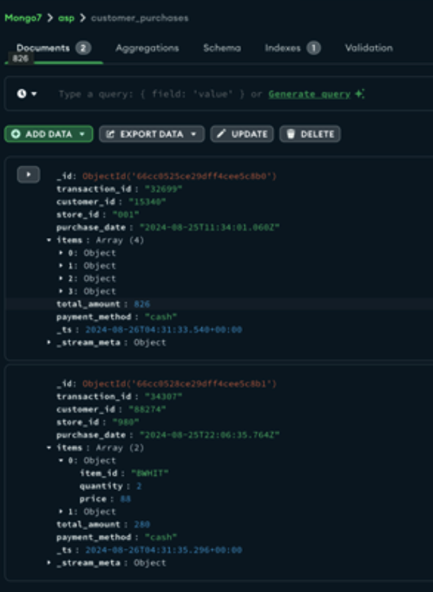 | $validate | Validates the documents of a stream against a user-defined schema. |